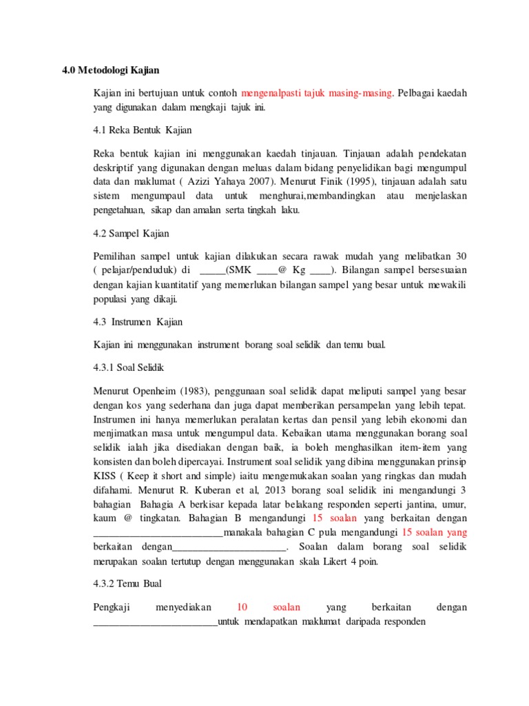 Contoh Penulisan Bab 3 Metodologi Kajian Pdf