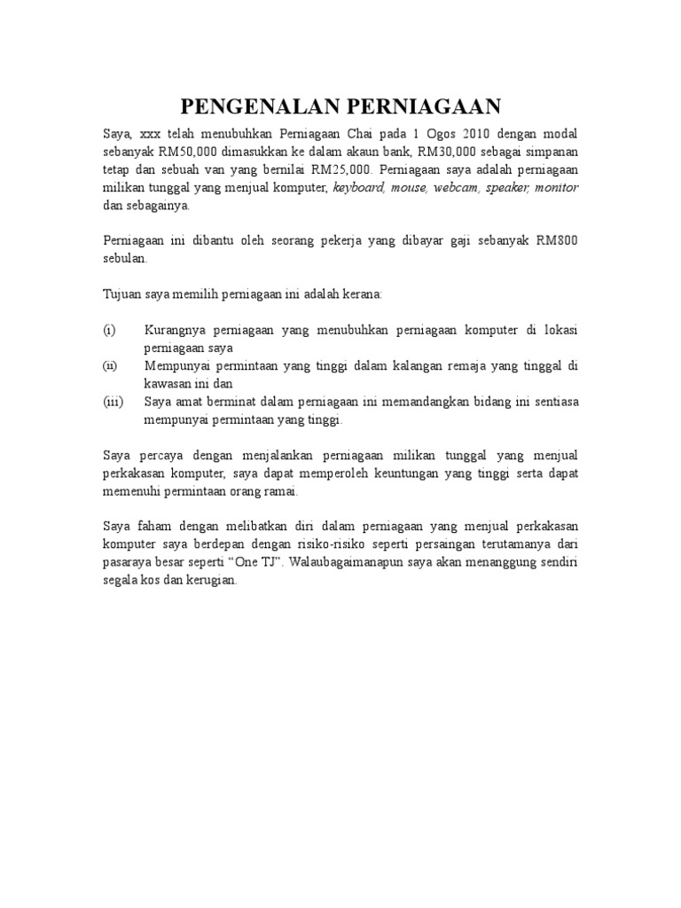 Contoh Pengenalan Perniagaan Pdf
