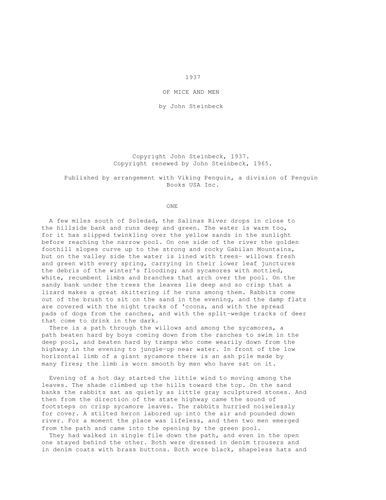 Published by arrangement with Viking Penguin a division of Penguin Books USA Inc. The shade climbed up. Of Mice and Men PDF Download Free John Steinbeck 0908202219062022 by drsahahistory.